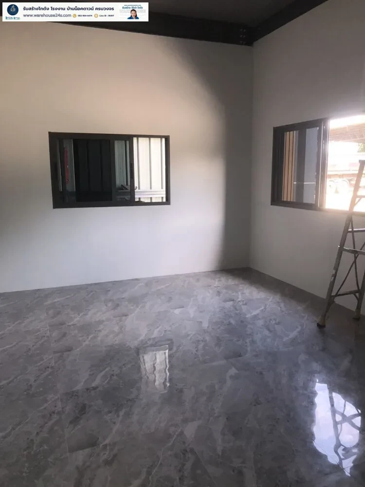 - งานพื้น: รวมงานพื้นคอนกรีตเสร็จสมบูรณ์ พร้อมใช้งาน